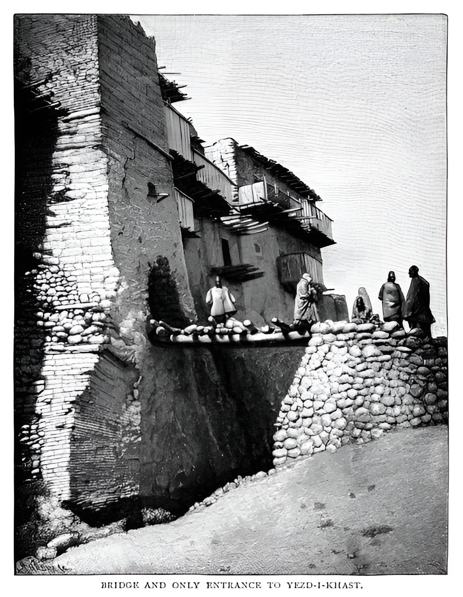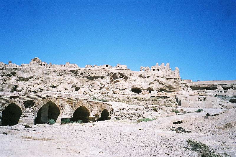 Izadkhast Castle is an exceptional example of Persian fortress design, characterized by its adaptation to the rocky landscape. The castle is built on a natural rock formation that rises dramatically from the surrounding plains, giving it a fortified and impenetrable appearance. The structure is divided into three main sections: the castle itself, a caravanserai, and a Safavid-era bridge.